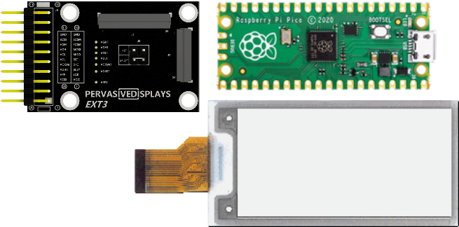 | EPD Pico Development Kit | EPDK | Based on EXT3-1 to bundle with Raspberry Pi Pico board, a 2.66" EPD and graphic library | Preprogrammed with a rich set of use cases to demonstrate every possible application. | |