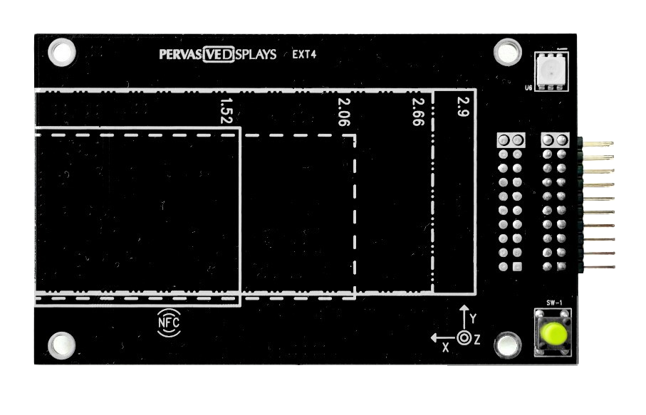 | EPD Extension Kit Gen 4 | EXT4 | 1.52", 2.06", 2.66", 2.9" | New development kit includes accelerometer, temperature and humidity sensor, button, RGB LED, passive NFC. | Alternative kit to work with our EPDs and built-in sensors to develop various EPD applications |